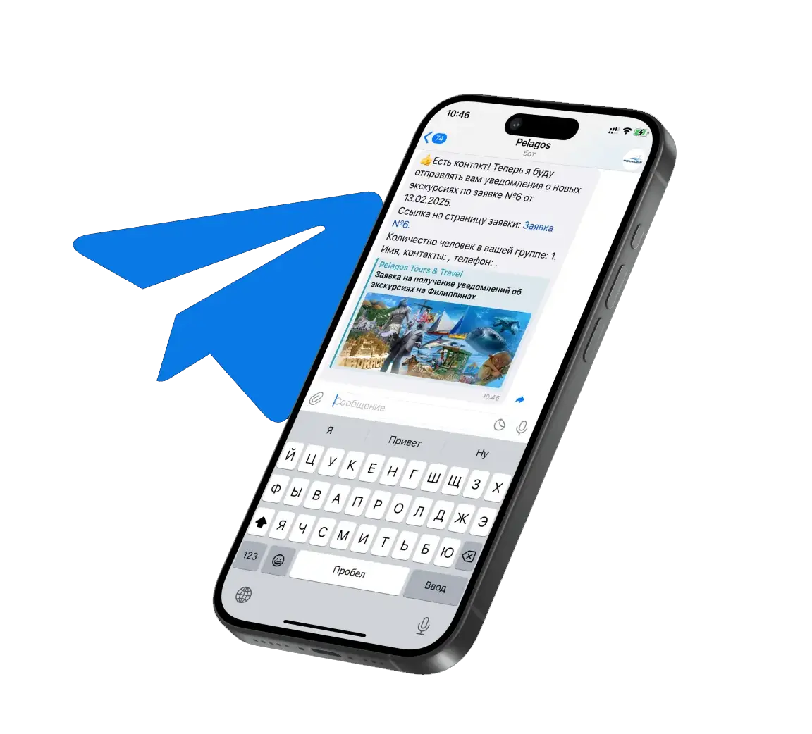 Вы можете подписаться на уведомления в Телеграм-бот обо всех событиях, планируемых на время вашего пребывания на Филиппинах, не подавая пока заявку на определённую экскурсию. Выберите острова, которые планируете посетить и даты поездки и перейдите по специальной ссылке в наш чат бот.